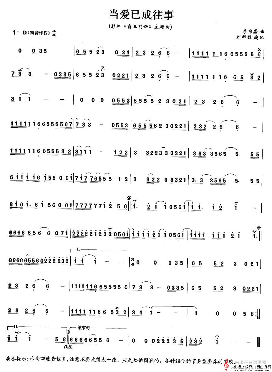 当爱已成往事简谱(当爱已成往事新笛或箫演奏曲谱)
