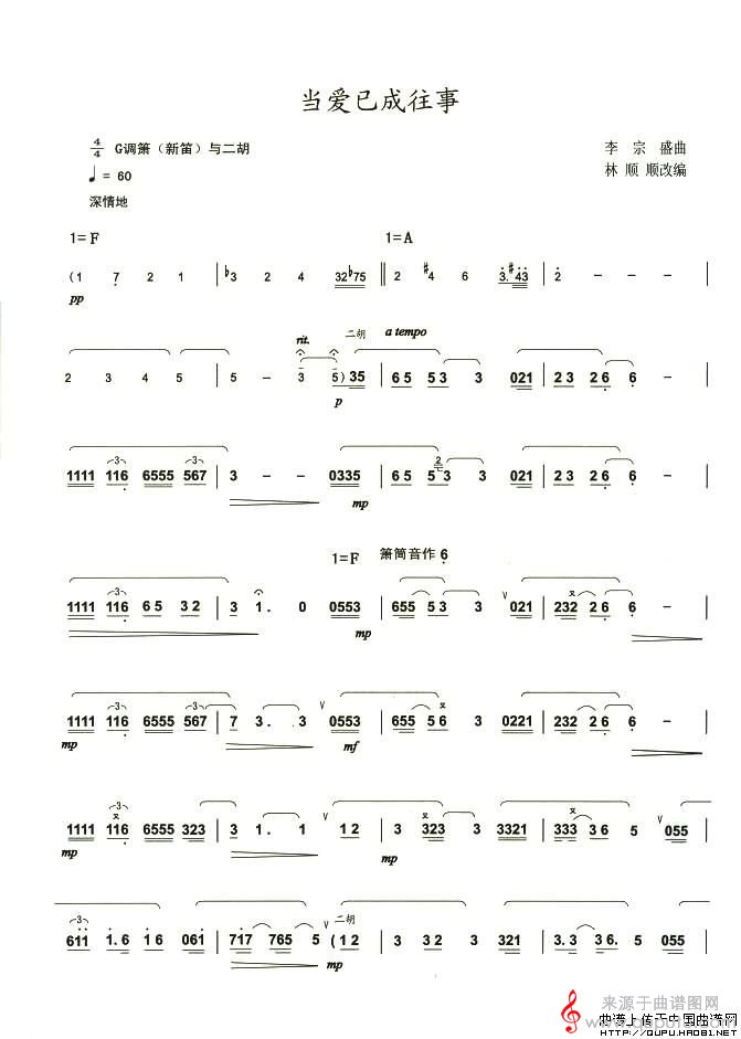 曲谱图网为您提供当爱已成往事简谱(当爱已成往事新笛或箫演奏曲谱)找谱子,就上曲谱图网。