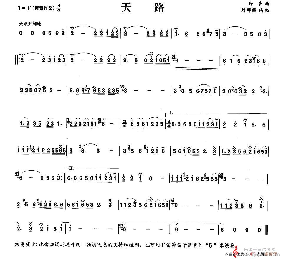 天路简谱(天路笛子演奏曲谱)