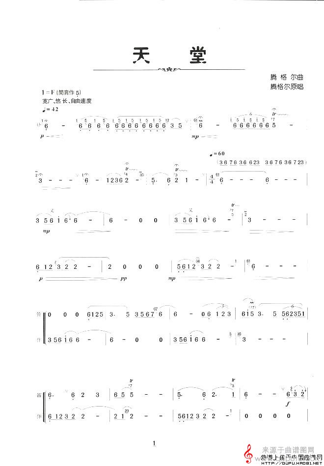 曲谱图网为您提供天堂简谱(天堂笛子演奏曲谱)找谱子,就上曲谱图网。