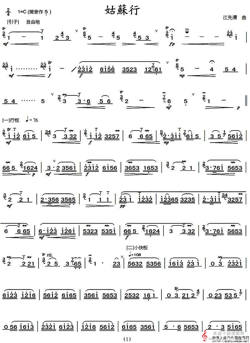 曲谱图网为您提供姑苏行曲谱(姑苏行竹笛演奏曲谱)找谱子,就上曲谱图网。