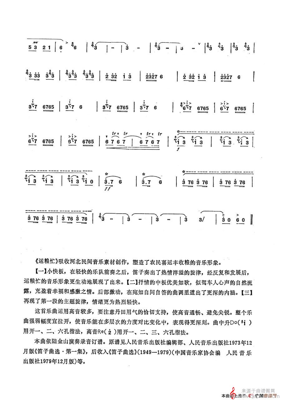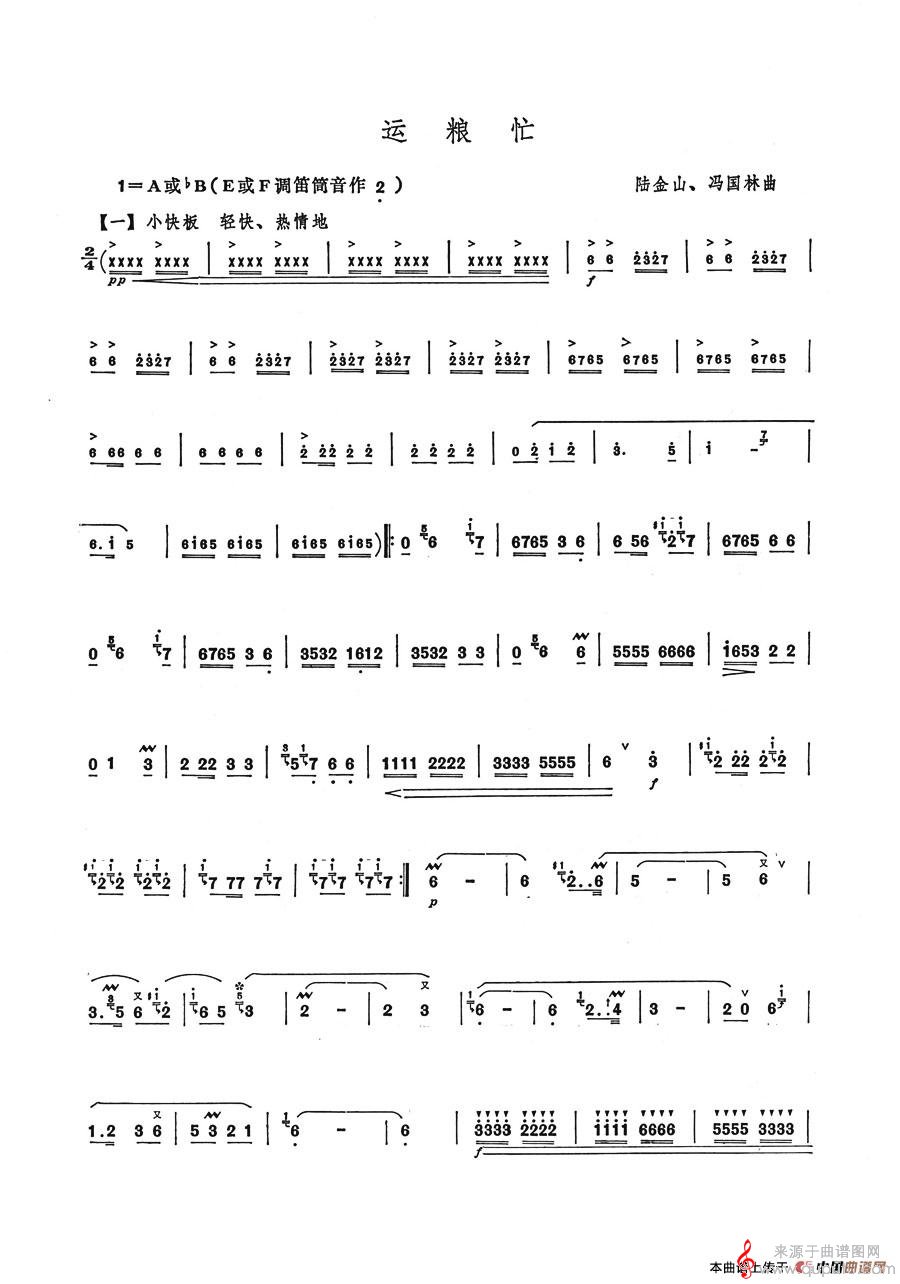 曲谱图网为您提供运粮忙曲谱(运粮忙竹笛演奏曲谱)找谱子,就上曲谱图网。