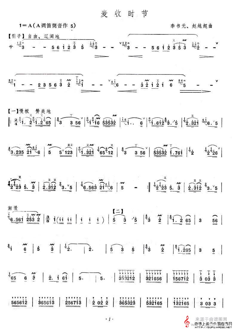 麦收时节(李书元作曲版)简谱(麦收时节(李书元作曲版)笛箫乐曲曲谱)