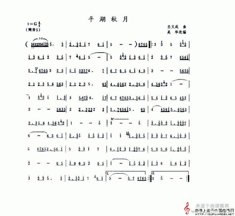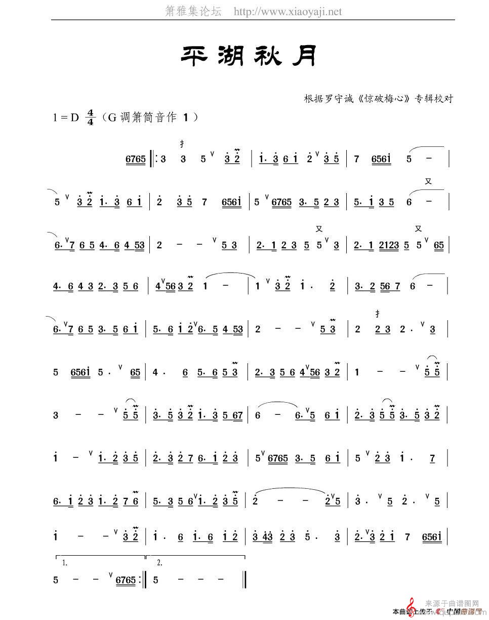 曲谱图网为您提供平湖秋月简谱(平湖秋月笛箫乐曲曲谱)找谱子,就上曲谱图网。