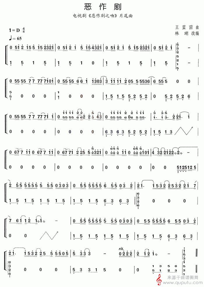 曲谱图网为您提供恶作剧(古筝演奏简谱)找谱子,就上曲谱图网。