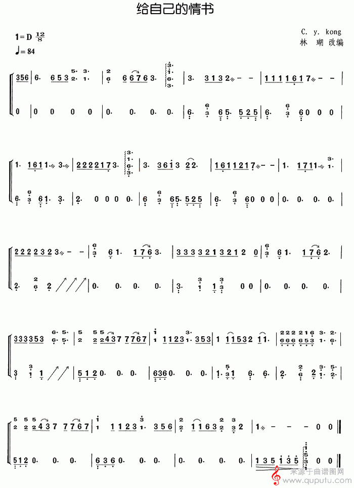 曲谱图网为您提供给自己的情书(古筝曲谱)找谱子,就上曲谱图网。