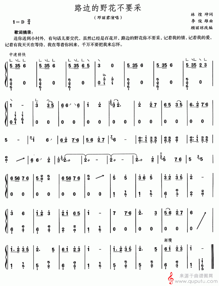 曲谱图网为您提供路边的野花不要采(古筝曲谱)找谱子,就上曲谱图网。