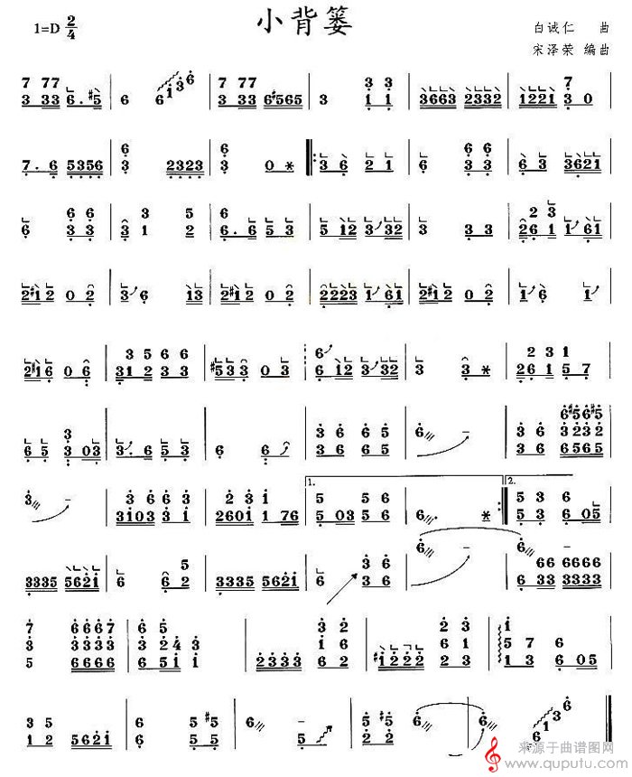 曲谱图网为您提供小背篓(古筝曲弹奏简谱)找谱子,就上曲谱图网。