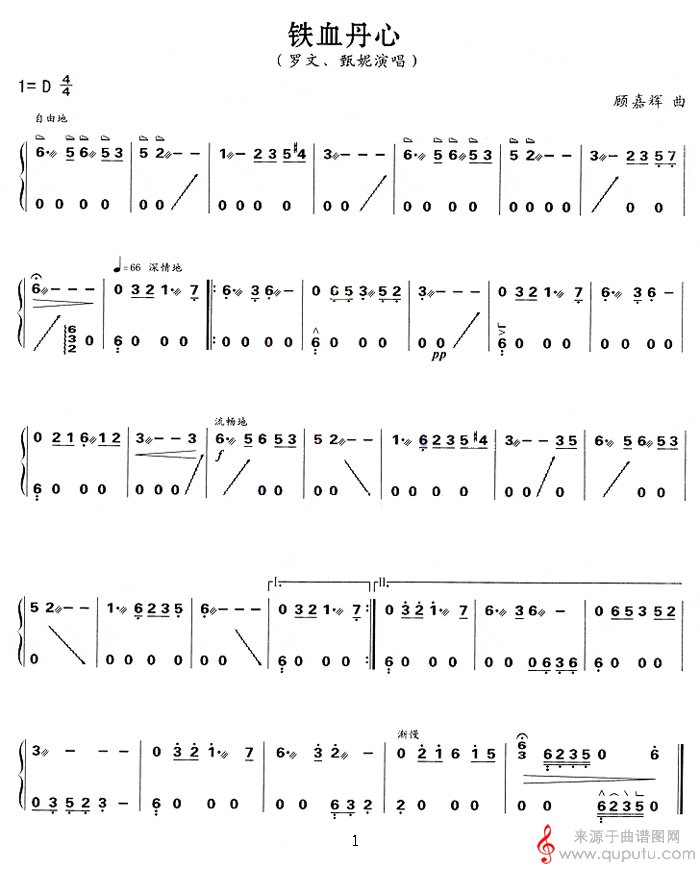 曲谱图网为您提供铁血丹心(古筝曲谱D调)找谱子,就上曲谱图网。