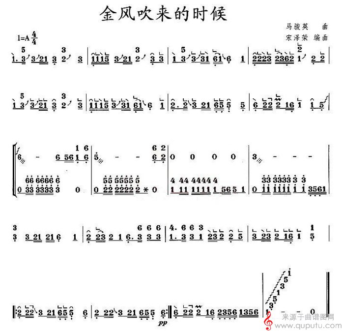 曲谱图网为您提供金风吹来的时候(古筝谱)找谱子,就上曲谱图网。