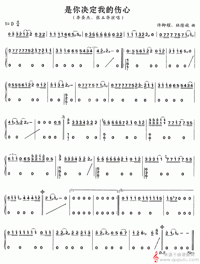 曲谱图网为您提供是你决定我的伤心(古筝曲谱)找谱子,就上曲谱图网。