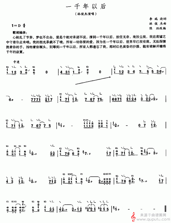 曲谱图网为您提供一千年以后(古筝教学曲谱)找谱子,就上曲谱图网。