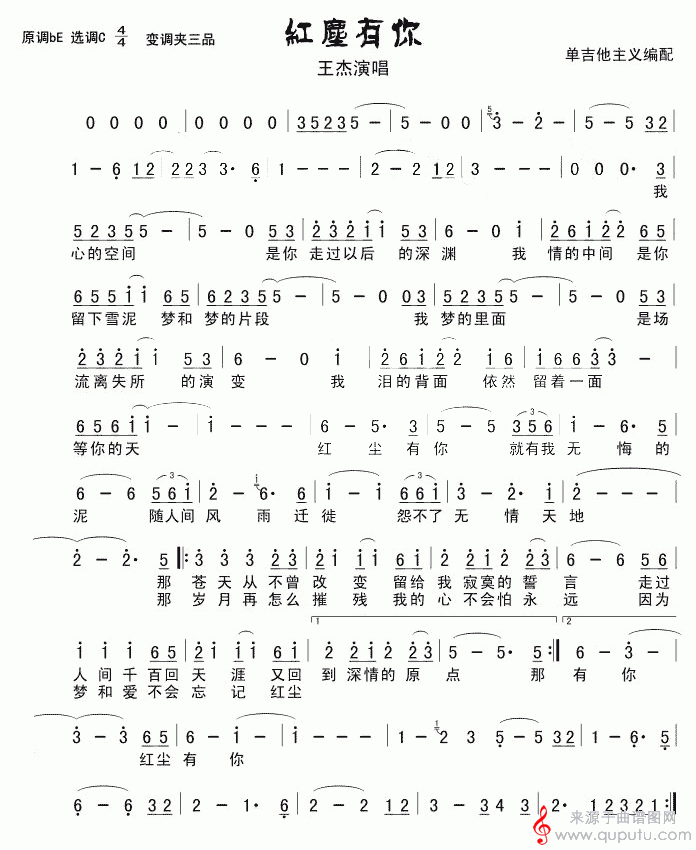 曲谱图网为您提供《红尘有你》古筝谱简谱找谱子,就上曲谱图网。