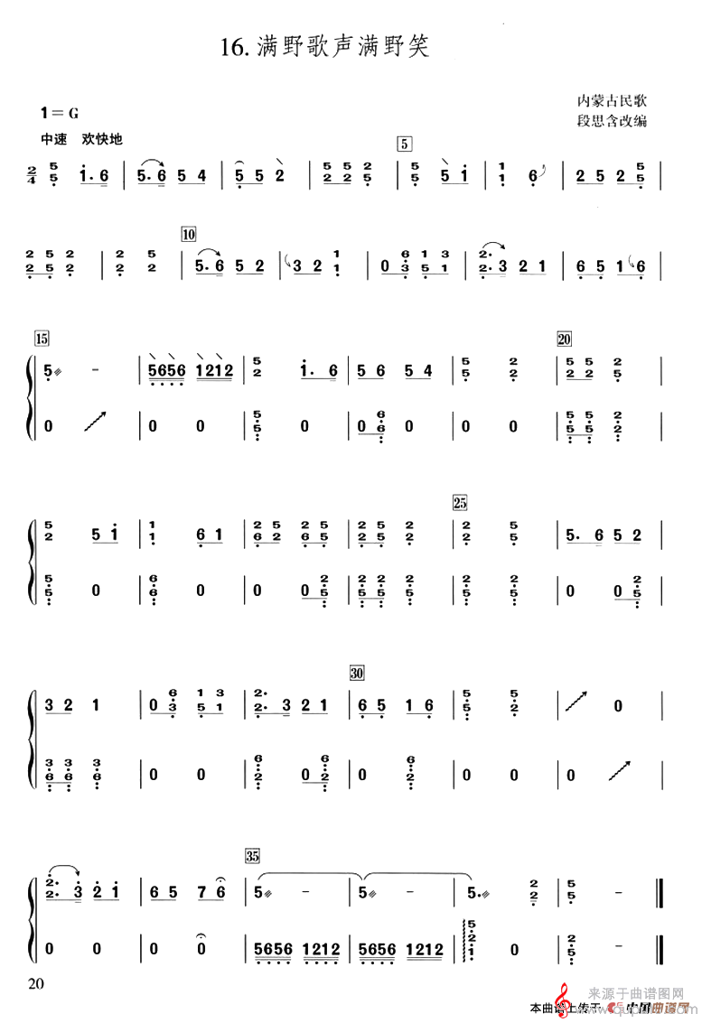 当前位置:曲谱图网器乐曲谱古筝古琴遍野歌声遍野笑(内蒙古民歌遍野歌声遍野笑原创简谱)
