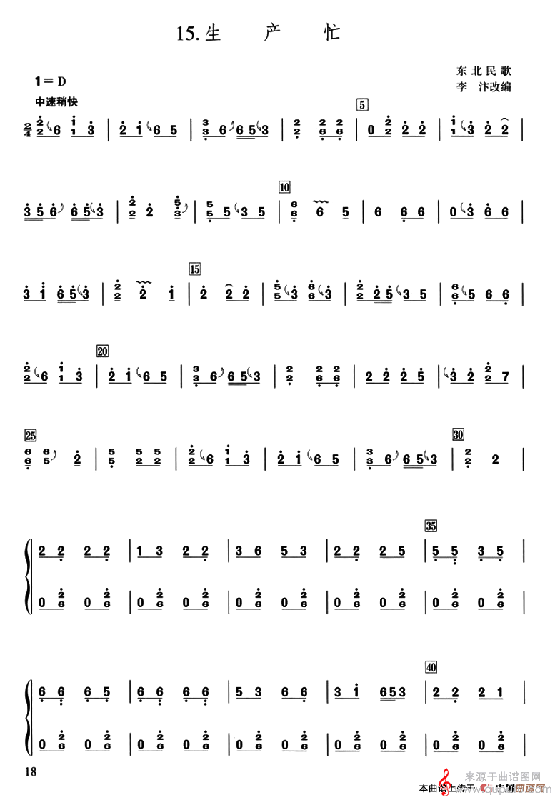 曲谱图网为您提供生产忙(东北民歌生产忙简谱曲谱练习)找谱子,就上曲谱图网。