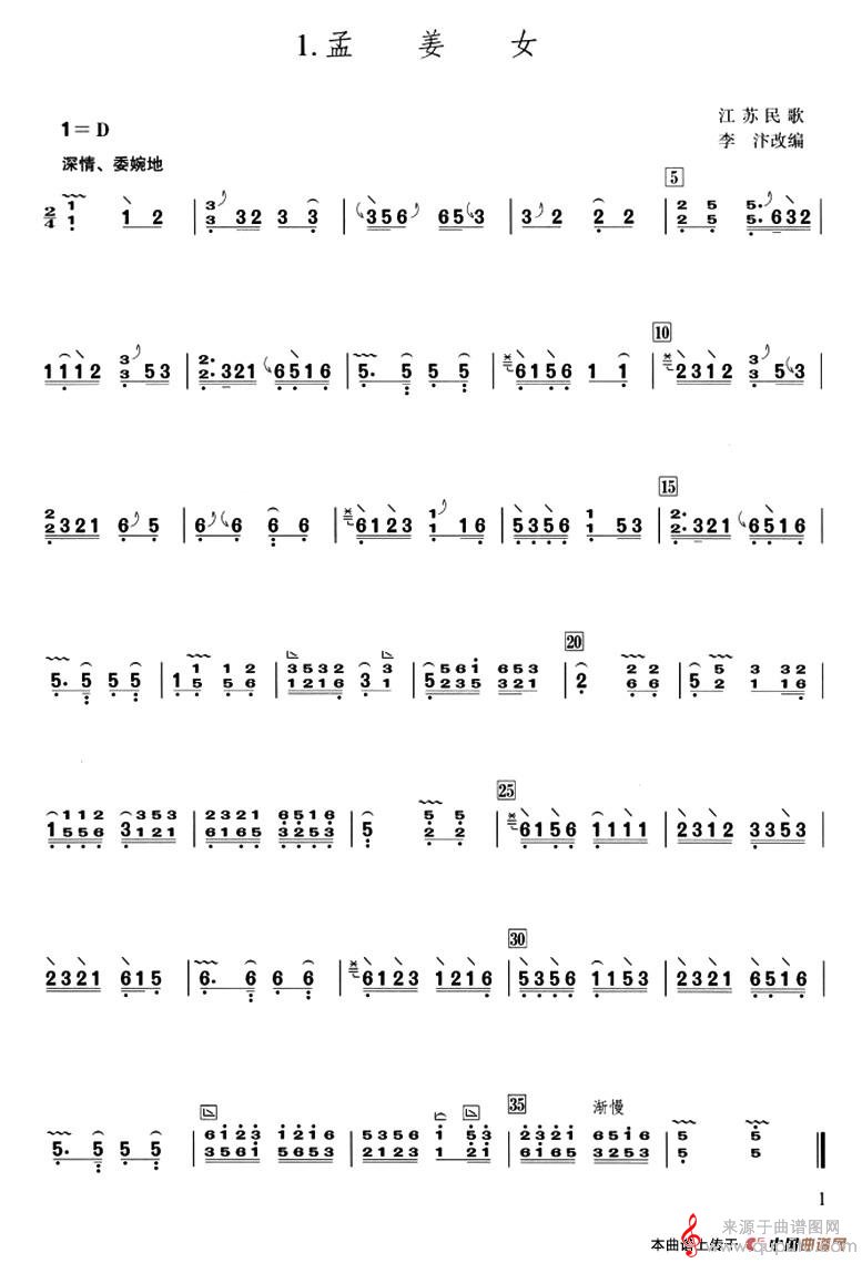 曲谱图网为您提供孟姜女(江苏民歌李汴改编版孟姜女简谱)找谱子,就上曲谱图网。