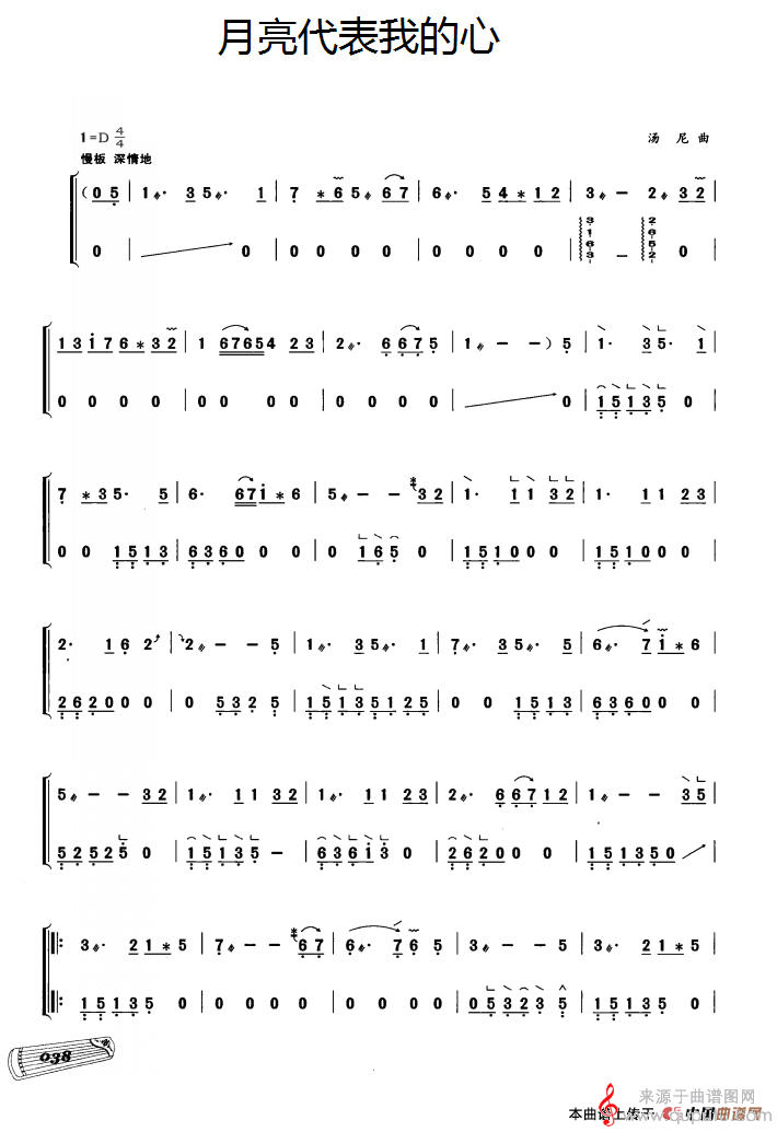 曲谱图网为您提供古筝独奏:月亮代表我的心(原创简谱月亮代表我的心)找谱子,就上曲谱图网。