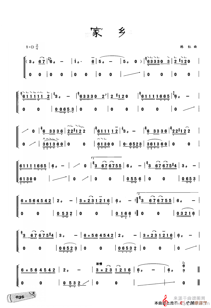 曲谱图网为您提供古筝独奏:家乡简谱曲谱找谱子,就上曲谱图网。