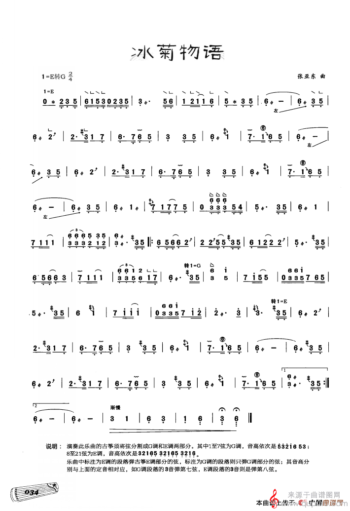 曲谱图网为您提供古筝独奏:冰菊物语简谱曲谱找谱子,就上曲谱图网。