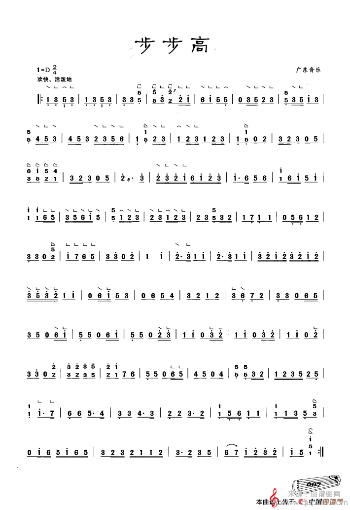 曲谱图网为您提供古筝独奏:步步高(广东民乐步步高原创简谱曲谱教学)找谱子,就上曲谱图网。
