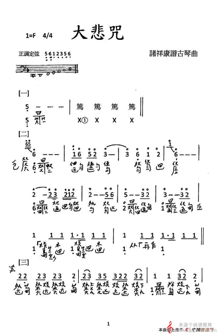 曲谱图网为您提供大悲咒(古琴谱、简谱+减字谱大悲咒简谱曲谱)找谱子,就上曲谱图网。