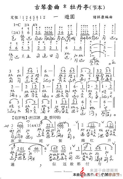 曲谱图网为您提供古琴套曲:牡丹亭·一游园(节本)(古琴谱、简谱+减字谱曲谱)找谱子,就上曲谱图网。