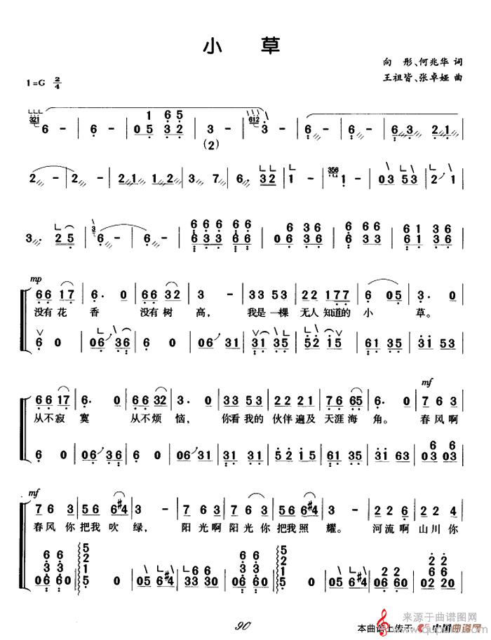 曲谱图网为您提供小草(小草弹唱谱简谱练习)找谱子,就上曲谱图网。