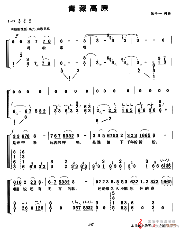 曲谱图网为您提供青藏高原(青藏高原弹唱谱歌词歌曲简谱)找谱子,就上曲谱图网。