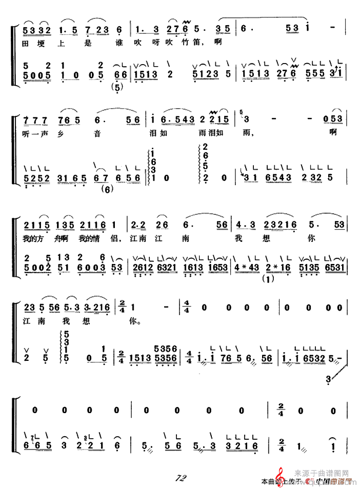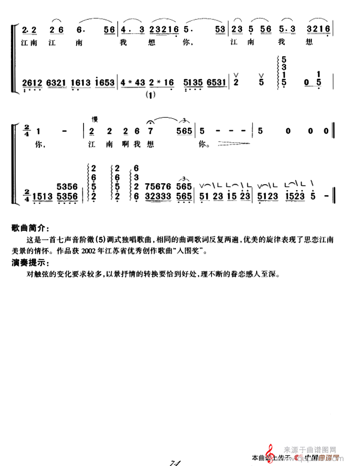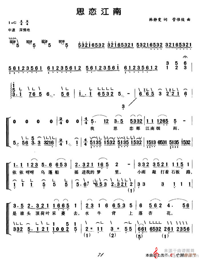 曲谱图网为您提供思恋江南(思恋江南弹唱谱简谱练习)找谱子,就上曲谱图网。