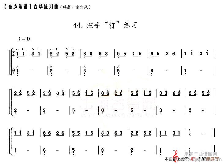 曲谱图网为您提供童庐筝谱:44.左手“打”练习简谱找谱子,就上曲谱图网。