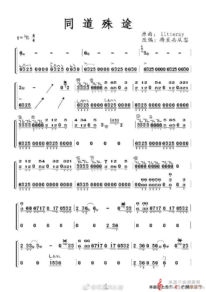 曲谱图网为您提供同道殊途(同道殊途歌词歌曲简谱)找谱子,就上曲谱图网。