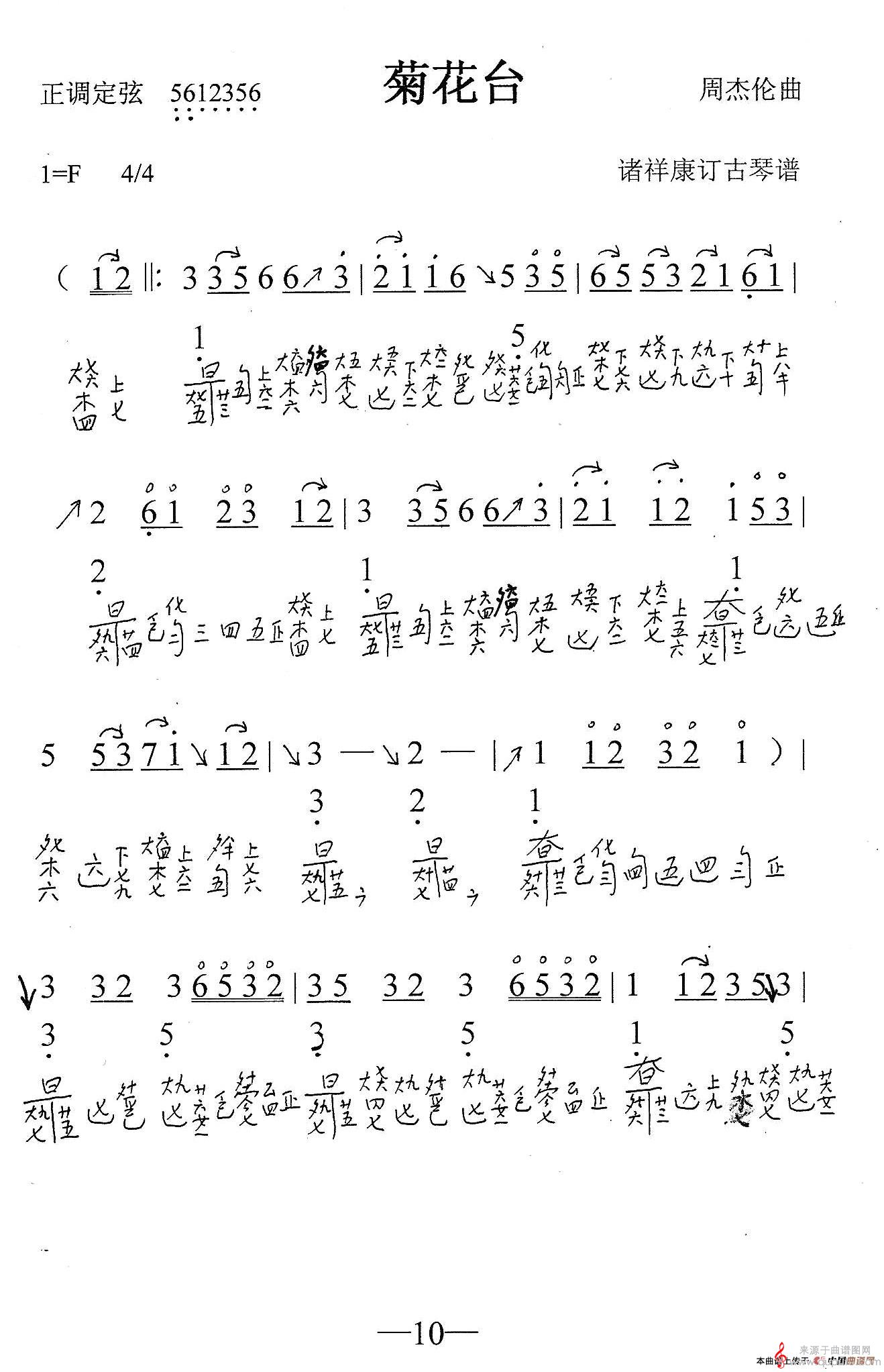曲谱图网为您提供菊花台(古琴谱、简谱+减字谱歌词歌曲简谱)找谱子,就上曲谱图网。