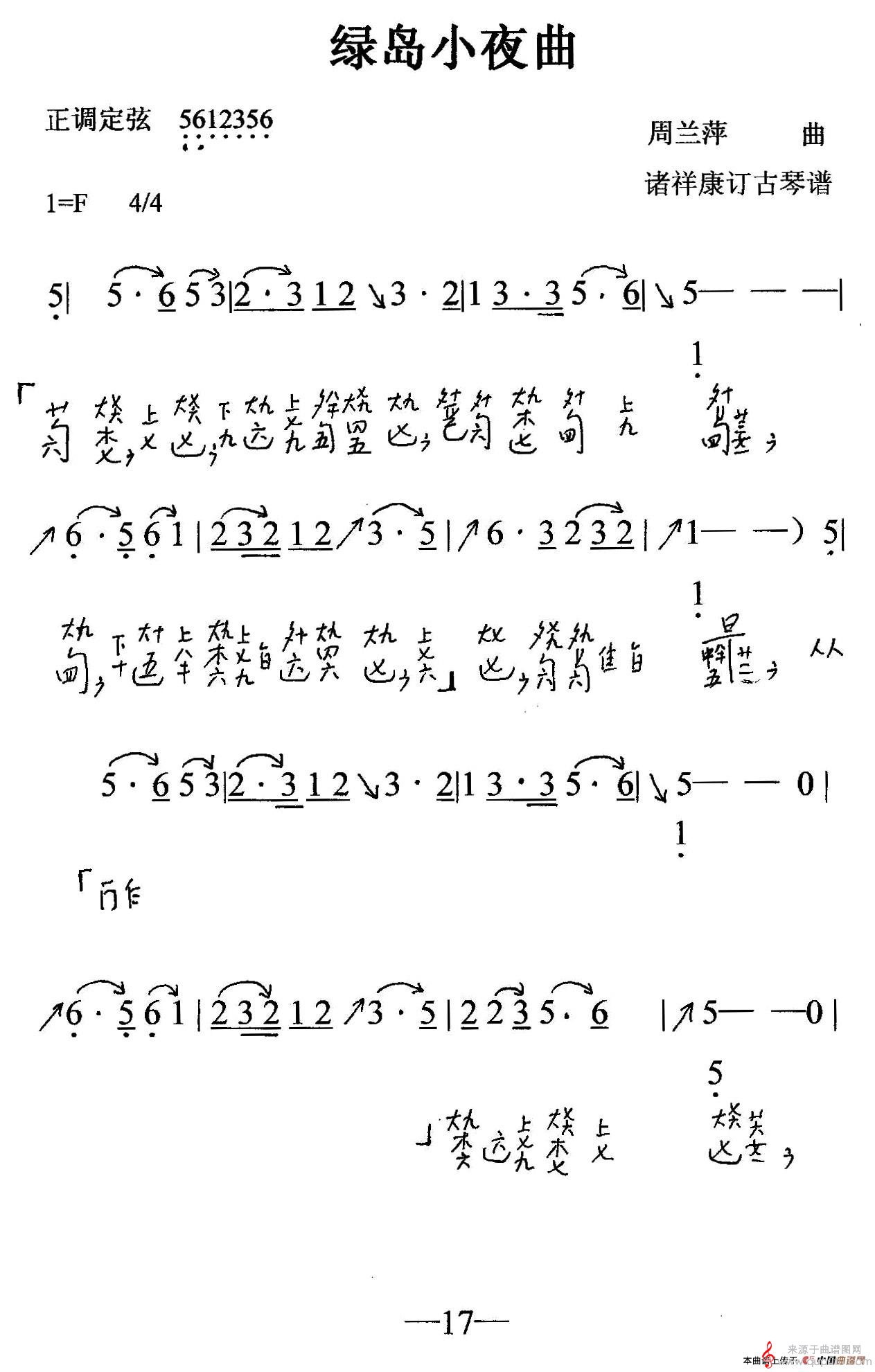 绿岛小夜曲(古琴曲、简谱+减字谱)