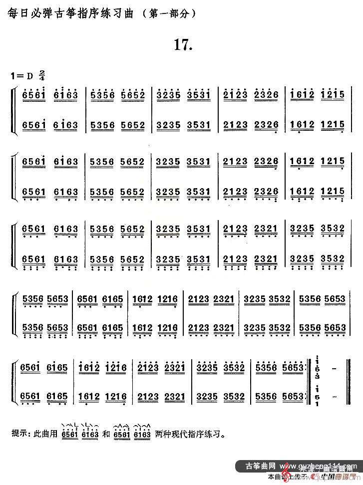 曲谱图网为您提供每日必弹古筝指序练习曲曲谱古筝谱(第一部分·17)找谱子,就上曲谱图网。