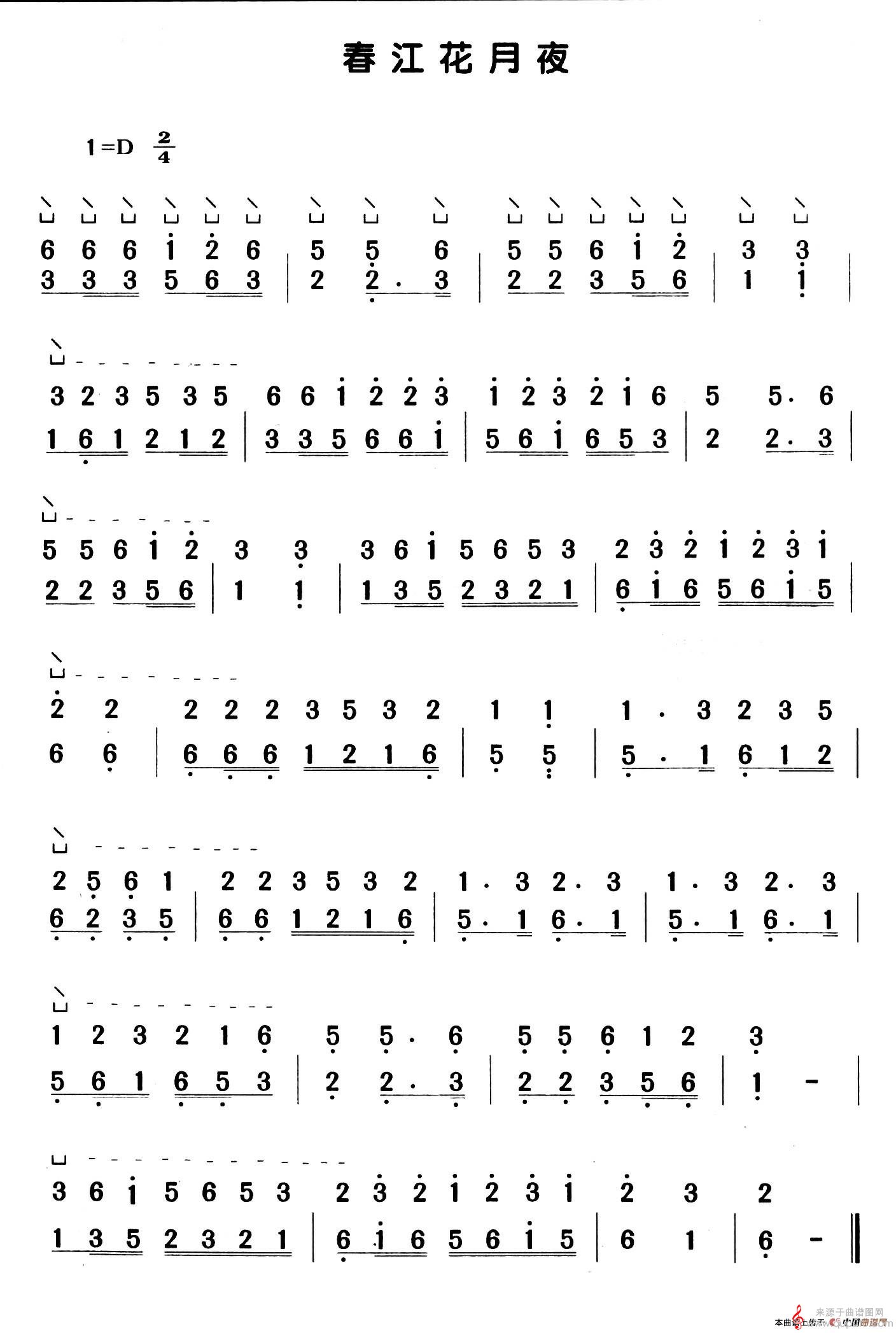 曲谱图网为您提供春江花月夜(D调春江花月夜歌词歌曲简谱)找谱子,就上曲谱图网。