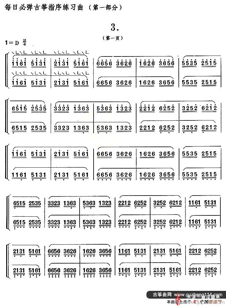 曲谱图网为您提供每日必弹古筝指序练习曲简谱(第一部分·3)找谱子,就上曲谱图网。