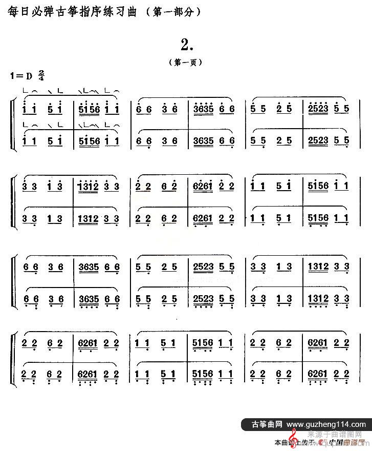 曲谱图网为您提供每日必弹古筝指序练习曲曲谱古筝谱(第一部分·2)找谱子,就上曲谱图网。