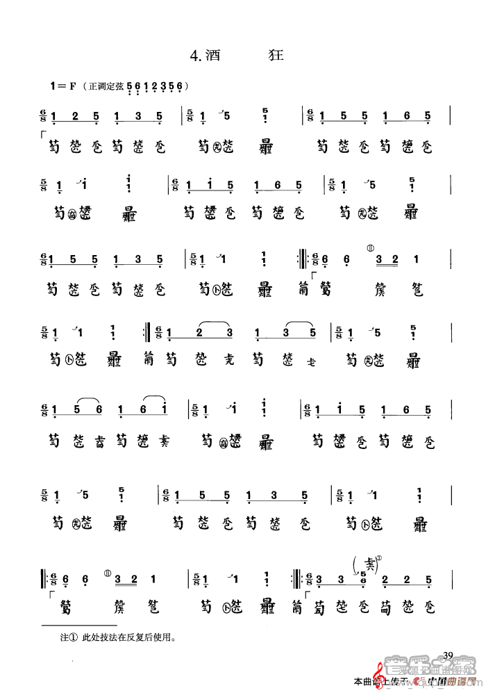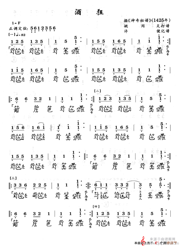 曲谱图网为您提供酒狂(古琴曲酒狂简谱曲谱古筝谱)(许健记谱)找谱子,就上曲谱图网。