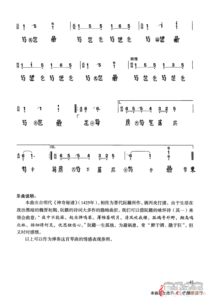酒狂(古琴曲酒狂简谱曲谱古筝谱)(许健记谱)