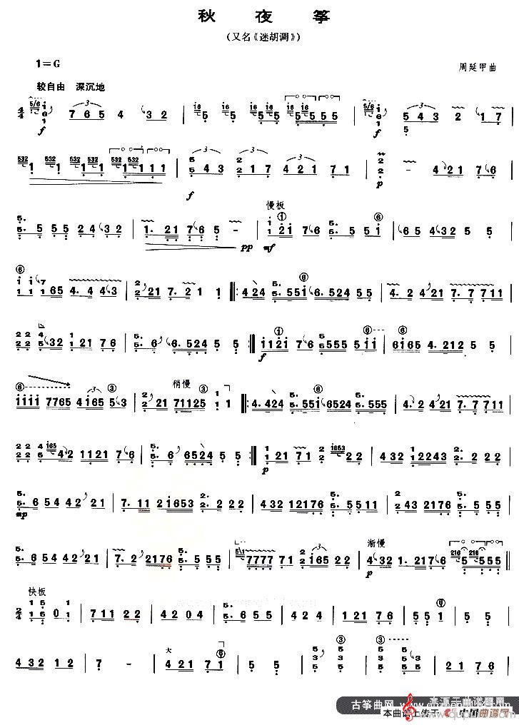曲谱图网为您提供秋夜筝(秋夜筝又名《迷胡调》歌词歌曲简谱)找谱子,就上曲谱图网。