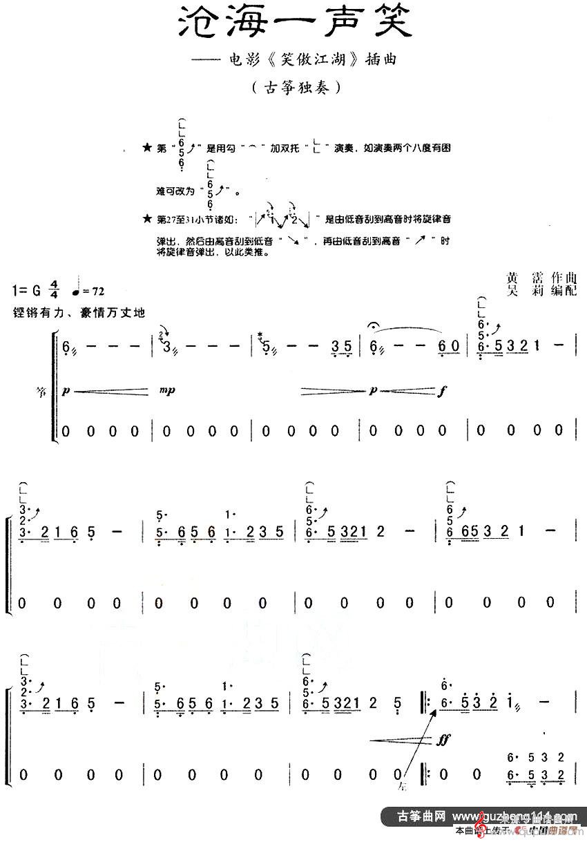 曲谱图网为您提供沧海一声笑(电视剧《笑傲江湖》主题曲歌词歌曲简谱曲谱)(吴莉编配版)找谱子,就上曲谱图网。