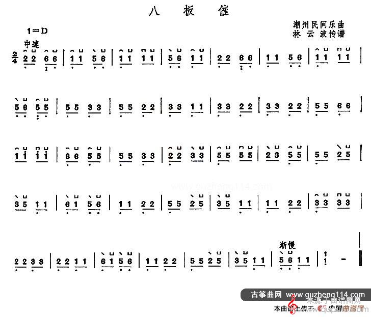 曲谱图网为您提供八板催(潮州民间乐曲八板催简谱教学)找谱子,就上曲谱图网。