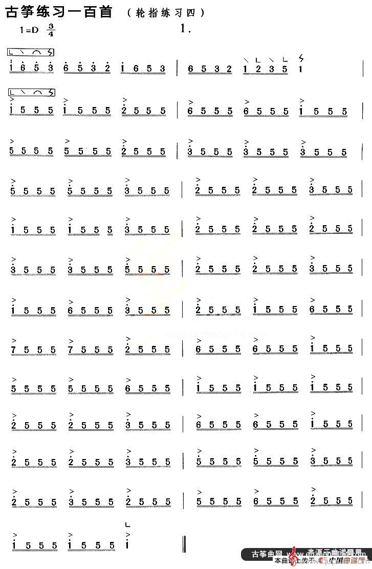 曲谱图网为您提供古筝练习:轮指练习(4)简谱古筝谱找谱子,就上曲谱图网。