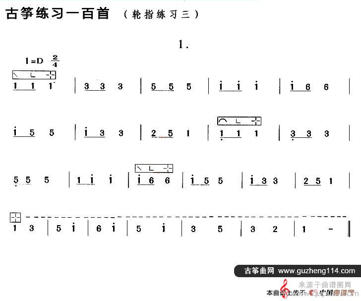 曲谱图网为您提供古筝练习:轮指练习(3)曲谱古筝谱找谱子,就上曲谱图网。