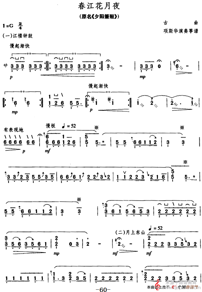 春江花月夜(原名《夕阳箫鼓》古曲简谱古筝谱)
