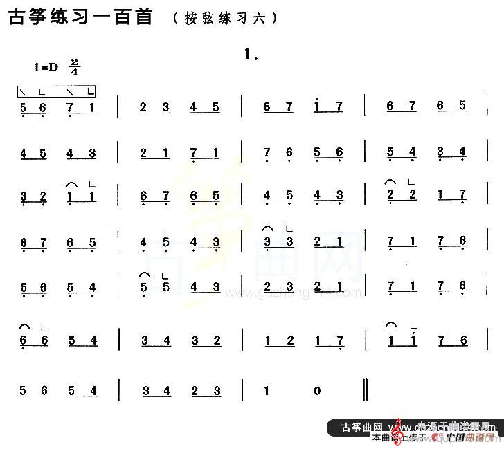 曲谱图网为您提供古筝按弦练习(六)简谱教学找谱子,就上曲谱图网。