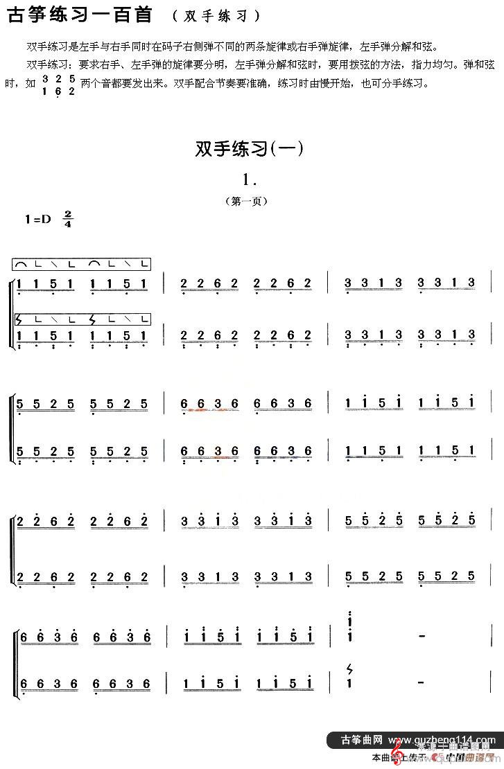 曲谱图网为您提供古筝练习:双手练习(1)简谱曲谱找谱子,就上曲谱图网。