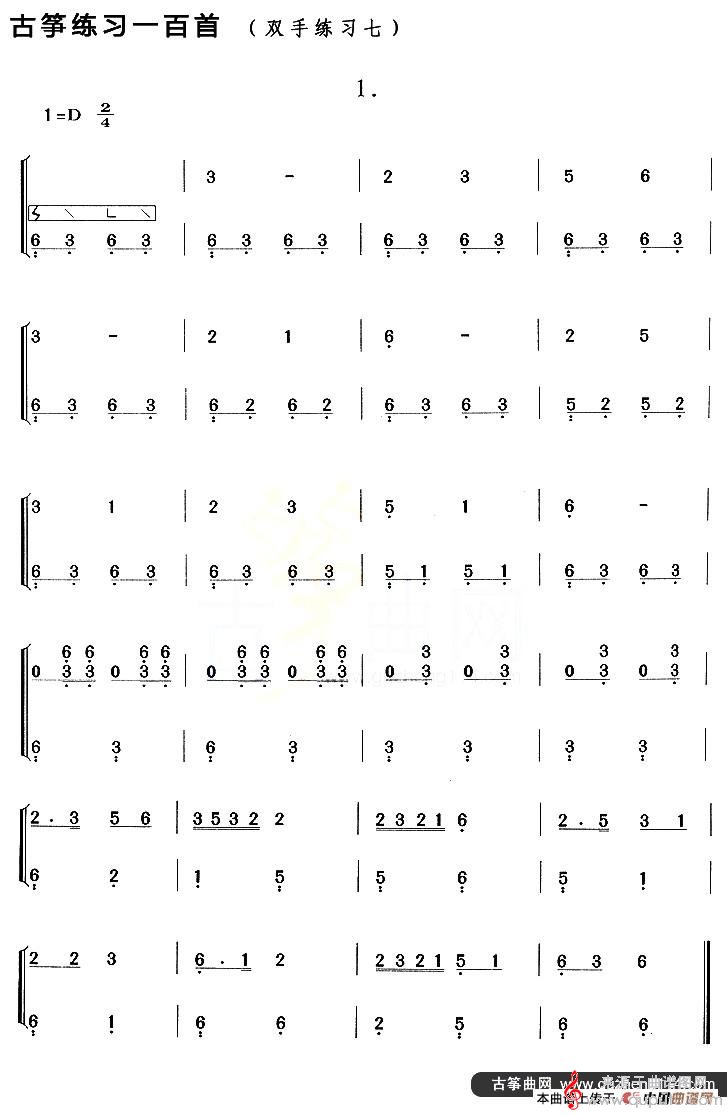曲谱图网为您提供古筝练习:双手练习(7)简谱曲谱找谱子,就上曲谱图网。