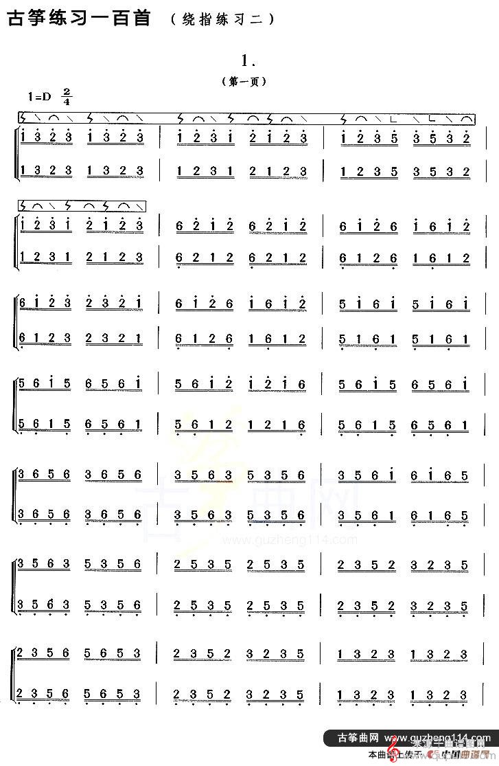 曲谱图网为您提供古筝练习:绕指练习(2)古筝谱简谱找谱子,就上曲谱图网。