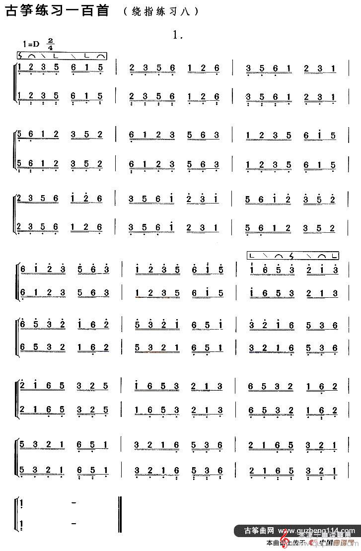 曲谱图网为您提供古筝练习:绕指练习(8)古筝谱简谱找谱子,就上曲谱图网。